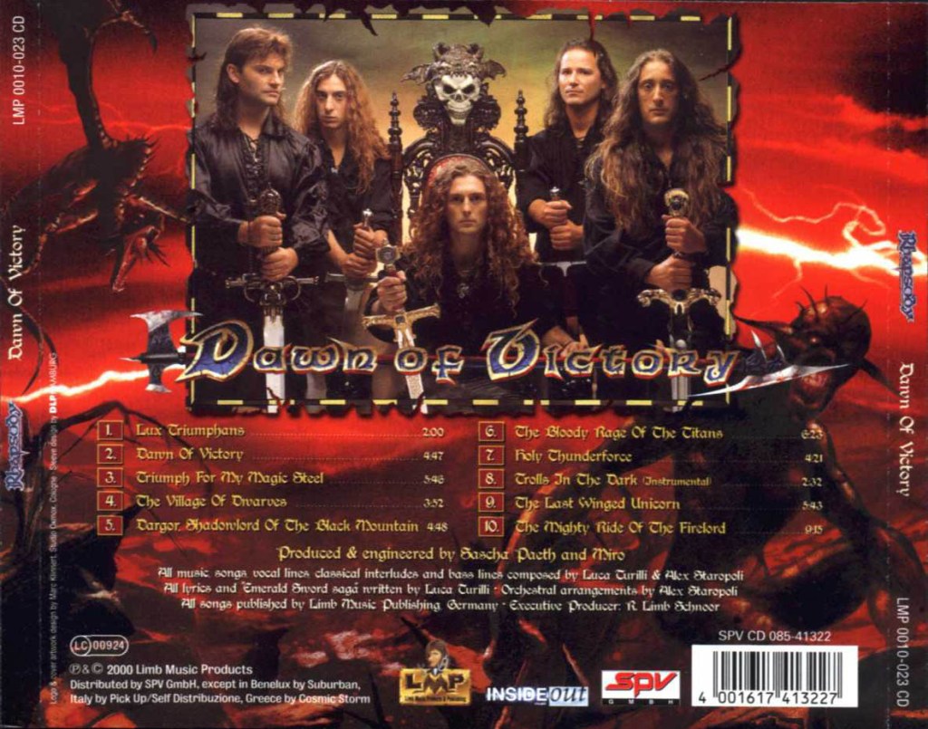 Dawn of Victory è quindi per certi versi un album di passaggio, che portò in seno ai Rhapsody il loro batterista definitivo e inserì le prime avvisaglie di un indurimento delle sonorità che avrebbe raggiunto il culmine con il capitolo successivo (quello sì, foriero di sorprese). Al netto di un andamento meno costante nella qualità della scaletta, la terza fatica del combo italiano ci consegnò due o tre delle canzoni più riuscite della band e la possibilità di vedere per la prima volta i musicisti suonare dal vivo.