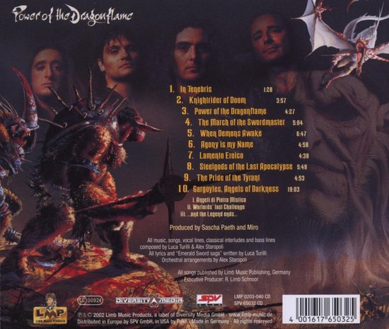La classica intro sinfonica, In Tenebris, stavolta ha un vero e proprio testo: si tratta dell’invocazione diabolica per l’apertura dei portali tra il mondo degli uomini e quello dei demoni. Il tripudio di cori culmina in un crescendo che esplode nella furente Kightrider of Doom, uno dei pezzi più metallici fin qui composti dai nostri e gradito ospite fisso nelle scalette dei concerti. Oltre alla velocità e al ritornello incalzante, la canzone si fa notare per una rapida alternanza di frasi in italiano integrate perfettamente con le strofe cantate in inglese. Si alza ufficialmente il sipario sul quarto e ultimo capitolo della Emerald Sword Saga.