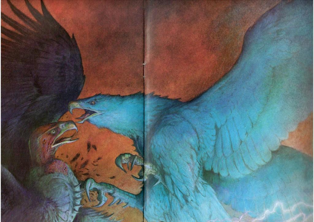 Se la storia risultava poco più di un piacevole pretesto per passare qualche minuto di evasione ogni tanto, le bellissime illustrazioni di Julek Heller erano capaci di tenere incollati alla pagina per parecchio tempo gli occhietti di giovani e bramosi lettori in erba, complice anche il grande formato dei fascicoli (circa 29 cm di altezza per 23 di larghezza), che permetteva di avere dei veri e propri affreschi a due pagine da ammirare. Sfumati con colori pastellati che ben si addicono alla tematica fiabesca, caldi e al tempo stesso dettagliati, gli immensi disegni a facciata intera riescono a catturare la fantasia in maniera efficace ancora oggi (nonostante le tecniche e gli strumenti a disposizione dei professionisti si siano evoluti molto) e sono lo sfondo perfetto per i paragrafi che raccontano l’avventura di Richard, il ragazzo la cui eterocromia oculare lo rende simbolicamente capace di vedere sia il male sia il bene.
