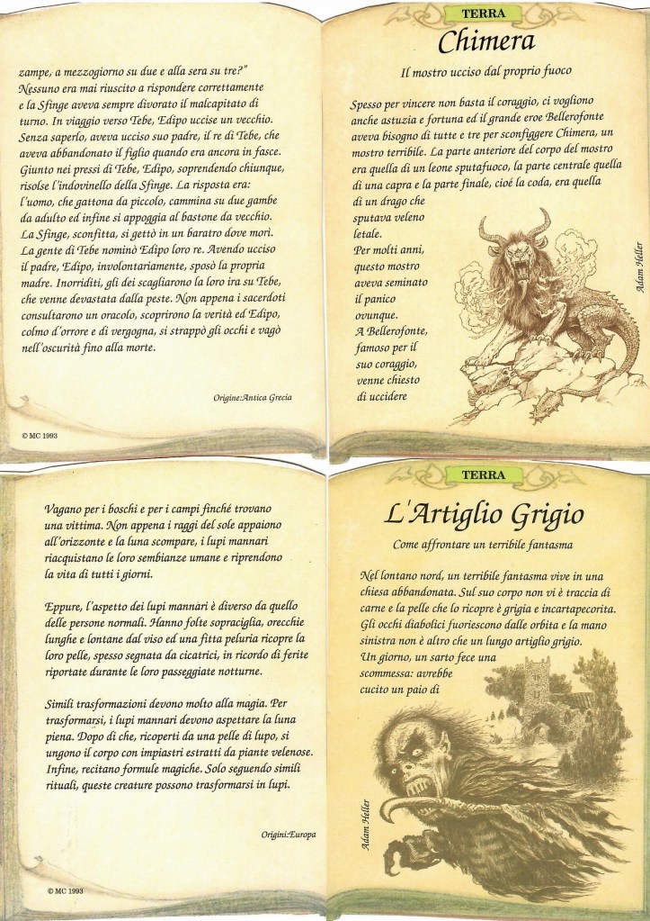 Come ogni uscita da edicola che si rispetti, alla storia vera e propria (che è ben lungi dal poter essere definita un capolavoro, pur essendo godibile) faceva da corollario tutta una serie di giochi e curiosità allegati. In appendice a ogni fascicolo, infatti, c’erano diversi extra da ritagliare e conservare. Porzioni di una mappa del Mondo Ancestrale da unire in un grande puzzle, per esempio, oppure figurine con i personaggi della storia da staccare e utilizzare come pedoni in un gioco di ruolo da tavolo.
