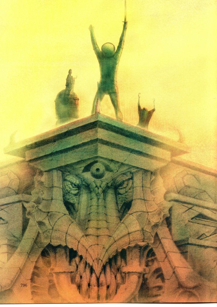 La ripetitività e la pochezza della relazione instaurata tra Richard e Robo (almeno finché il robot non rivelerà un terribile segreto, in uno dei rari colpi di scena della storia) caratterizza l’intera seconda parte dell’avventura del prescelto. Se da un lato questo mina la godibilità e l’empatia che il lettore prova nel leggere le vicende dei protagonisti, dall’altro aumenta il fascino dell’esplorazione in solitaria di un mondo alieno cui è stata sottratta qualsiasi forma di calore umano. Per compensare almeno un poco questo aspetto, verso i due terzi dell’avventura si aggiungerà al dinamico duo un terzo personaggio: un buffo wigmat (questa la razza) di nome Teeza, un animaletto che è uno strano incrocio tra una scimmietta e uno scoiattolo volante. Teeza è capace di parlare e a differenza di Robo, con il quale non va molto d’accordo, parla fin troppo e con l’entusiasmo di un bambino.